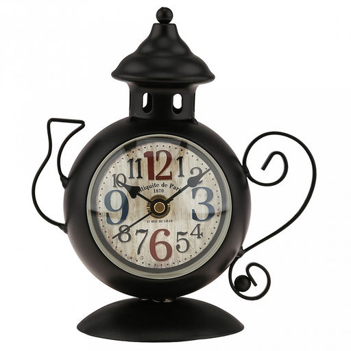 • Часы настольные интерьерные "Чайник" 13,5х8х16см, мягкий ход, циферблат с рисунком, бежевый; цифры арабские, черный; выпуклое стекло; элементы металл, корпус пластик, черный матовый; в коробке (Китай)