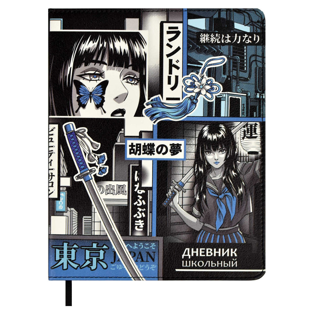 Дневник школьный арт. 66473 / 15 ГЕРОИ АНИМЕ КОМИКС (кожзам: А5+; твёрдый переплёт, материал обложки: искусственная кожа "Наппа"; декор: полноцветная печать; способ крепления блока: ниткошвейный; вн. блок: 48 л., белый офсет 80 г/м?, печать в одну краску, справочный материал: универсальная шпаргалка; закладка: одно ляссе; форзац: печать в одну краску; индивидуальная упаковка: ПЭТ-пакет)
