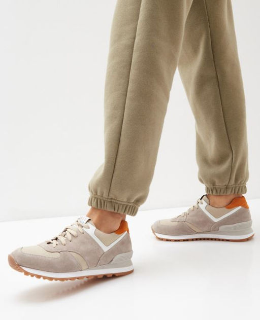 Кроссовки женские KROS серо-бежевого цвета с белыми и оранжевыми элементами. Сочетание натуральной кожи, спилка и текстиля делает пару практичной, она прекрасно садится по ноге и долго носится. Шнуровка регулирует посадку.