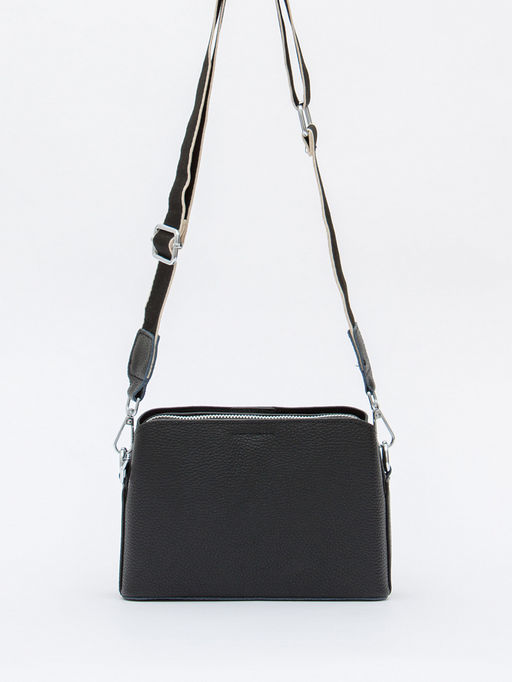 Миниатюрная сумочка, выполнена из натуральной кожи. Дополнена серебристой фурнитурой. Данная модель закрывается на молнию. Каркас полужесткий. В комплекте имеется съемный ремень с регулировкой длины и ремень-стропа.