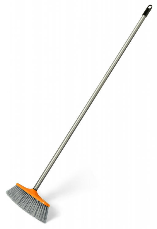 Щетка классической формы подходит для уборки как внутри помещений, так и на улице. Щетка имеет длинную (80мм) средней жесткости щетину, позволяющую без труда удалять пыль и незначительные загрязнения с гладких напольных покрытий. Длина колодки составляет 245мм, а закругленные края защитят предметы от повреждения. Длинная ручка (117 см) позволяет сохранять прямое положение корпуса во время уборки, что значительно снижает нагрузку на спину. Ручка снабжена заглушкой с отверстием для подвеса.