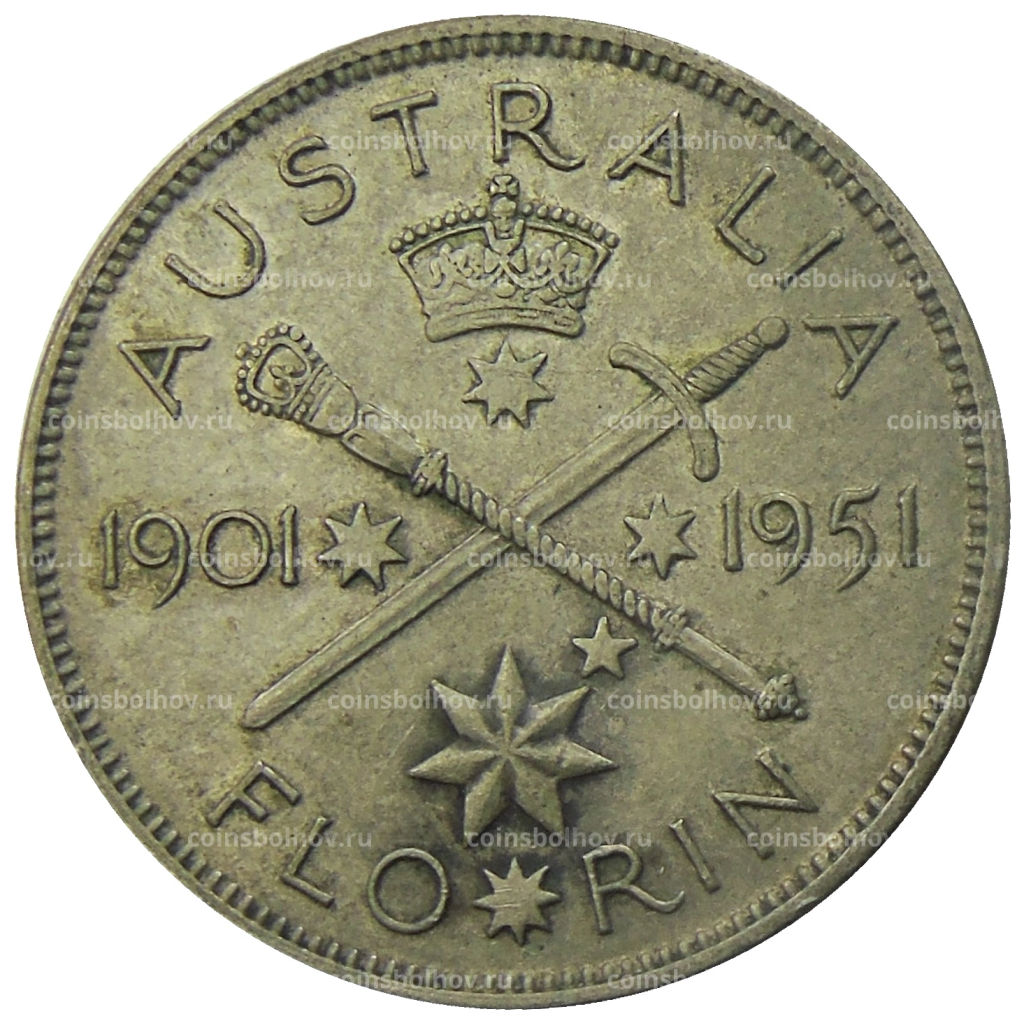 • Монета 1 флорин (2 шиллинга) 1951 года Австралия  50 лет Федерации