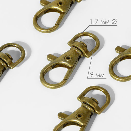 • Цена за 2 шт. Карабин металлический, 37×12 мм / 9×1.7 мм, 10 шт., цвет бронзовый