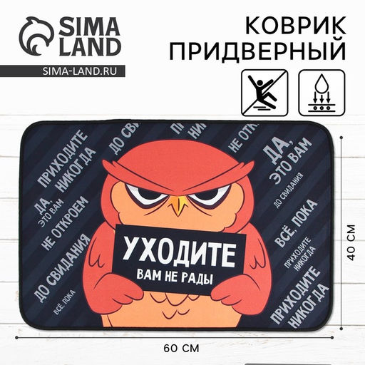 Форма: Прямоугольная. Длина, см: 60. Ширина, см: 40. Тематика: Дом. Тематика: Животный мир. Вид покрытия коврика: Универсальный. Бесплатная доставка: Да. Наша разработка: Да. Размеры товара: 40/60/0.5.