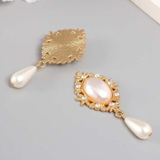 Цена за 2 шт. Декор для творчества металл, пластик «Жемчужина в цветах с подвеской», 5.4×2.5×0.7 см