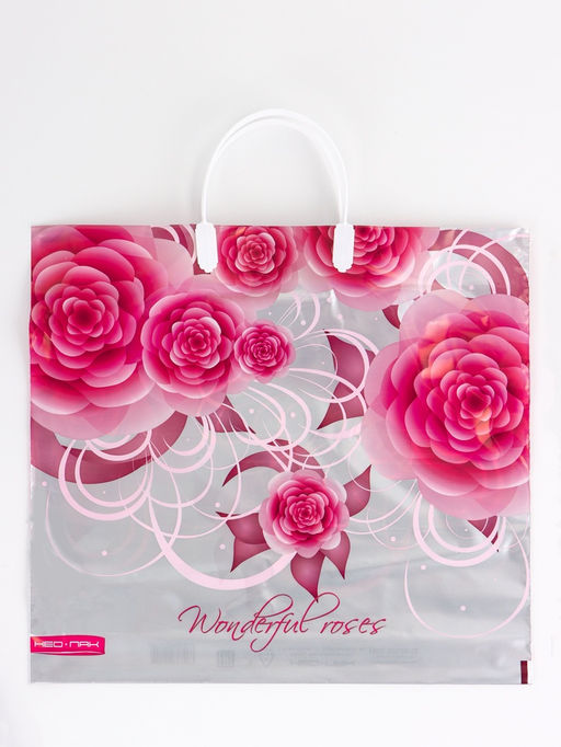 * Удобство при переноске подарков: Прошитые пластиковые ручки удобно ложатся в ладонь. Формат 37x35 см с расширяющимся дном даёт достаточно места для объёмных, но не слишком тяжёлых презентов.
