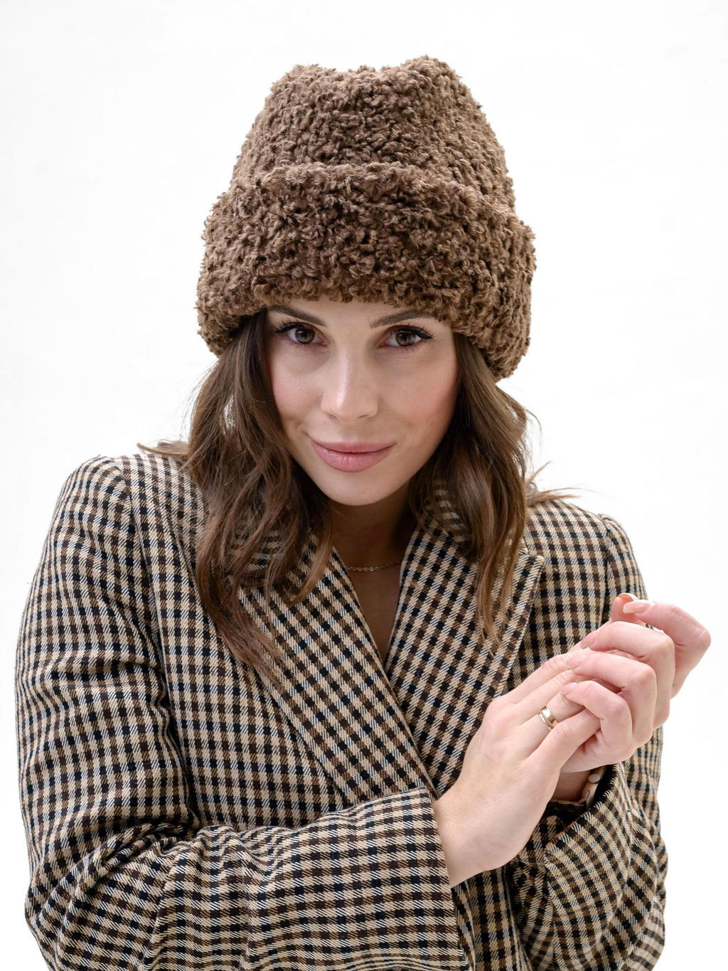 Эксклюзивная модель от тм ЭтоЭльф - шляпа пилотка из высококачественного искусственного меха под плюшевого мишку Тедди коричневого цвета. Невероятно мягкий материал, мелкий завиток. Высота пилотки 17 см. Утепленный хлопковый подклад. Удобная посадка на голове, внутри предусмотрена утягивающая тесьма для регулировки размера. Уровень отворота также можно регулировать. Стильный аксессуар, который покорит ваше сердце и притянет взгляды окружающих!