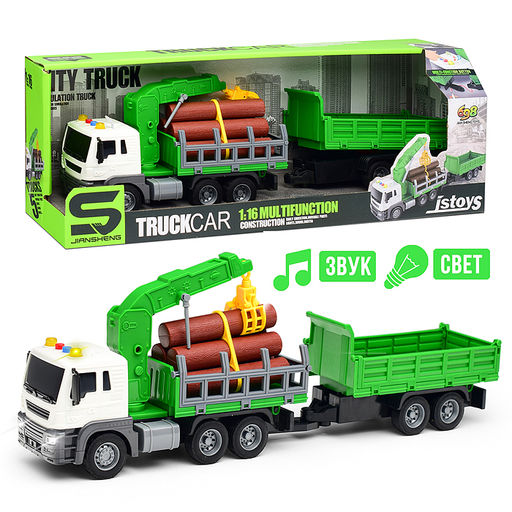 • Машина "Лесовоз" с прицепом, на батарейках, в коробке