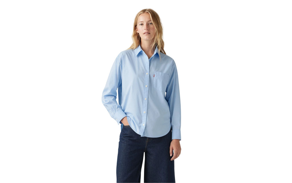 - Непринужденный стиль: классическая рубашка на пуговицах, которая отлично смотрится как в одиночном образе, так и накинутая поверх вашей любимой футболки.