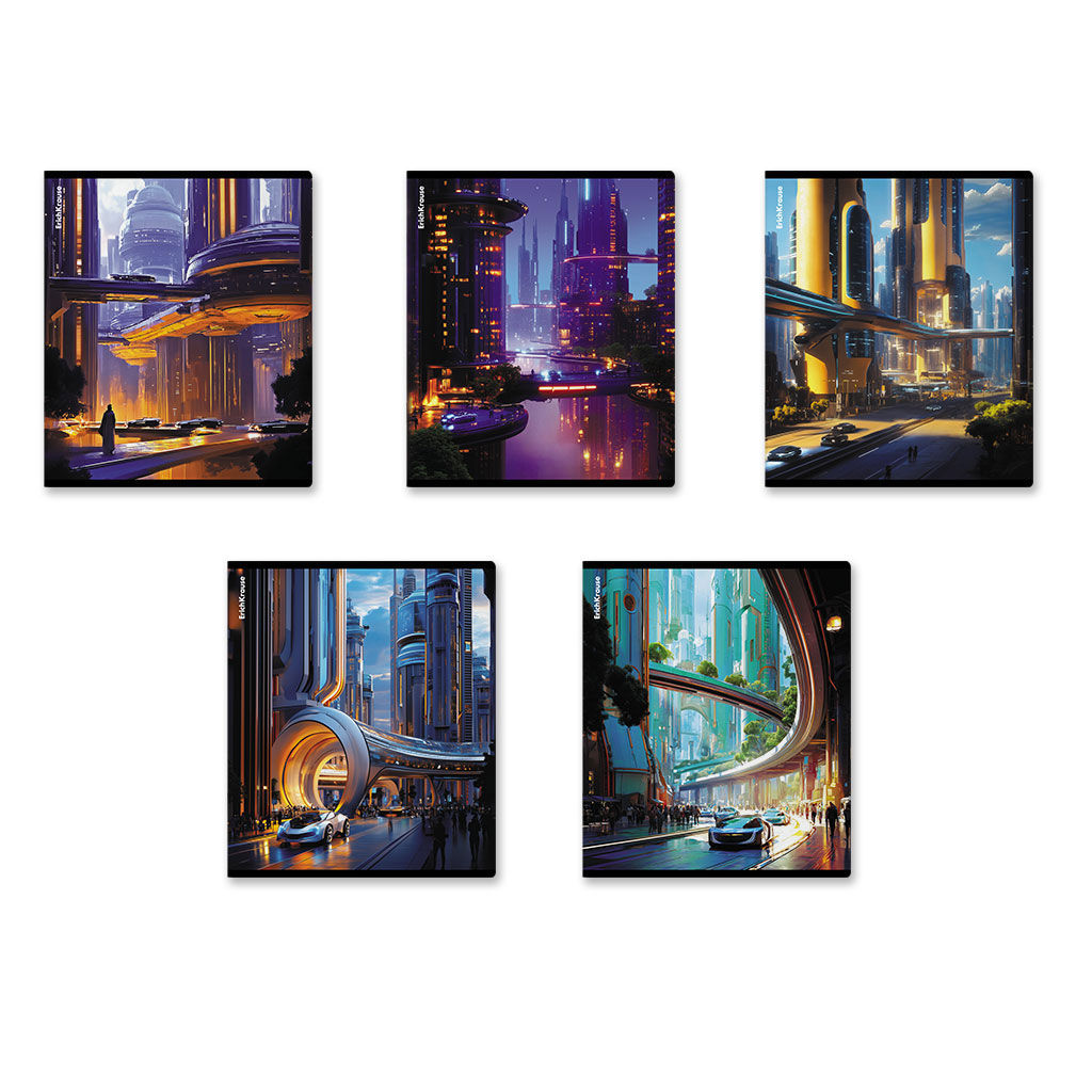 • АКЦИЯ Цена за 5 шт. Тетрадь общая ученическая ErichKrause Futuristic, 48 листов, клетка, твин-лак_MIX-PACK