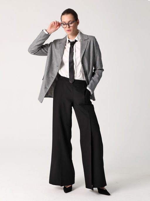 Размерную сетку модели смотрим на сайте www.diway.ru. Замеры самого изделия можно уточнить у организатора или посмотреть в таблице по ссылке https://disk.yandex.ru/d/es8gKDxRVaKAlQ "Брюки палаццо - это неотъемлемая часть гардероба каждой стильной и уверенной в себе женщины. Особенностью широких длинных брюк являются разрезы спереди, которые придают еще больше элегантности и изящества вашему образу. На передних половинках обработаны косые карманы. Наши широкие штаны на резинке с высокой талией созданы для того, чтобы подчеркнуть вашу фигуру и придать ей изящный силуэт. Прямой крой классических брюк делает их универсальными и подходящими для любого случая. Вы сможете носить их как в офисе, так и на свидание или вечеринку. Женские брюки выполнены из качественных материалов, которые гарантируют сохранение первоначальной формы и цвета даже после многократных стирок.