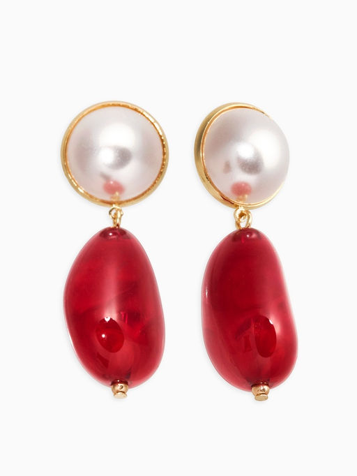 • Серьги акрил с жемчугом «Капля», бордово-белые в золоте
