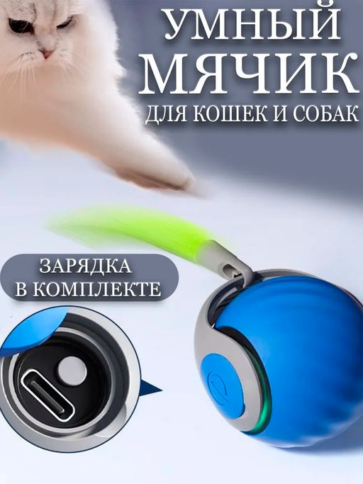 Умная игрушка с хвостиком для кошек - движущийся USB мяч интерактивный с хвостиком. Мячик для животных дразнилка - это новинка в разделе зоотовары которая выполнена из безопасного и приятного на ощупь силикона. Такая интерактивная игрушка для животных надолго отвлечёт вашего питомца от лежанки и от миски для животных с лакомством. Игрушка для кошек и собак не имеет в составе кошачьей мяты она без запаха которая станет лучшим другом для вашего домашнего животного - как для собаки так и для кота! В комплекте с движущимся мячиком идет USB кабель, а также встроенный датчик касания (активируется на втором интеллектуальном режиме касанием лапы) который приводит мяч в движение что в свою очередь побуждает питомца к нападению и игре. Игрушка практически бесшумная! Зоотовары для кошек игрушки для кошек интерактивные дразнилка для кошек товары для кошек. Умный мяч прекрасно подходит для игр для собак мелких пород. Устойчива к укусам но не подходит для грызения так как внутри игрушки механизм. Важно отметить что для мяча абсолютно не требуются батарейки ведь элемент питания встроенный и легко заряжается от любого USB (ноутбук power bank авто-зарядка) адаптера. Цвет микс.