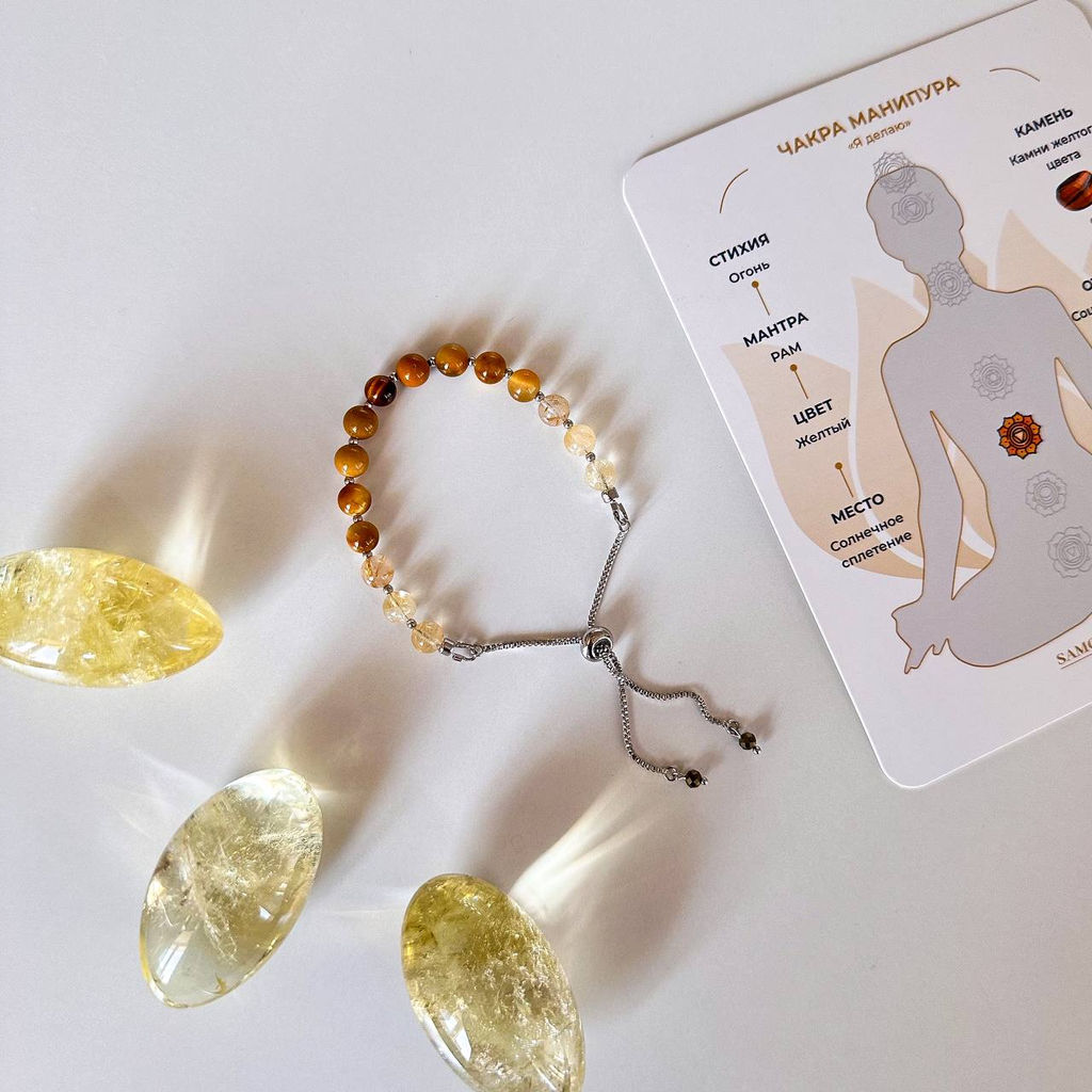Браслет регулируемый из камней для проработки третьей чакры "Манипура" от 15 см