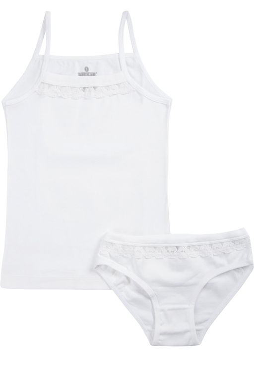 Состав: 95% хлопок, 5% эластан . Страна: Турция. Настоящий комфорт тут! Детский набор из майки и трусов слипов для девочки выполнен из хлопка с небольшим добавлением эластана. Белый комплект для детей украшен кружевом и станет любимым в бельевом гардеробе.