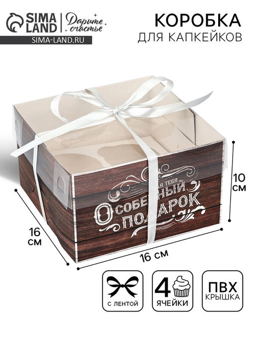 Цена за 5 шт. Коробка для капкейков, кондитерская упаковка, 4 ячейки «Для тебя особенный подарок», 16×16×10 см