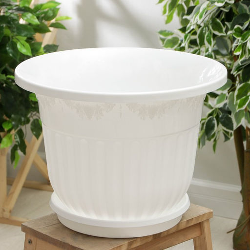 Горшок для цветов с поддоном «Лозанна», 25 л, пластиковый, белый