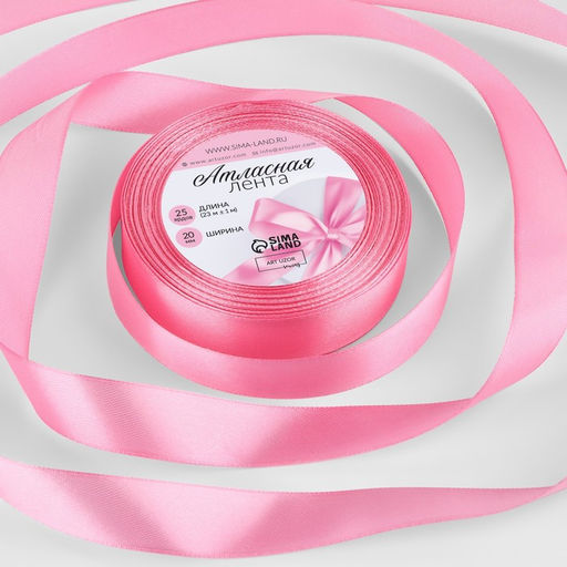 Цена за 2 шт. Лента атласная, 20 мм, 23±1 м, нежно-розовая