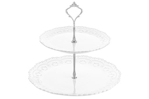 • Блюдо-этажерка 2-х ярусная 28*28*25 см "Белый узор" с серебристым креплением