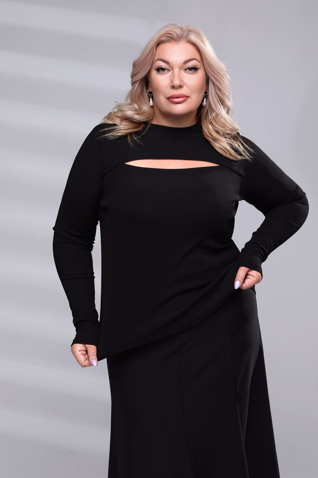 Удобный лонгслив облегающего кроя из мягкого трикотажа  имеет рукава полной длины. Круглая горловина и женственный вырез на груди оформлены узким кантом. Комбинировать модель такого плана можно с любимыми джинсами, брюками, юбками и шортами, создавая стильные аутфиты, в которых Вам будет максимально комфортно.­