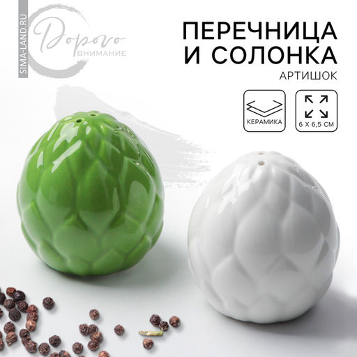 • Перечница и солонка из керамики «Артишок», белая и зеленая 6 х 6.5 см, цвет белый-зелёный