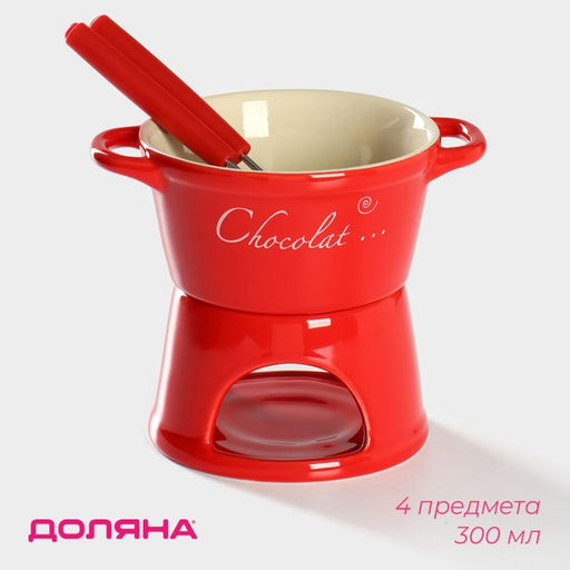 Набор для фондю «Лакомка», 300 мл, 2 шпажки, керамика, красный