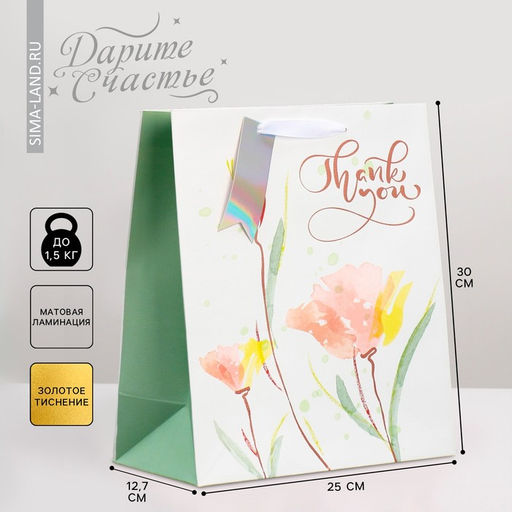 • Цена за 2 шт. Пакет подарочный ламинированный, упаковка, тиснение, «Спасибо», 25 х 30.5 х 12.5 см