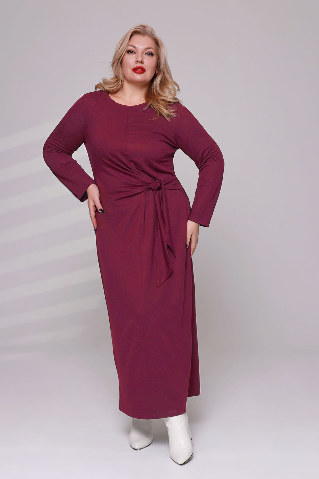 Платье однотонное с завязкой сбоку бордо