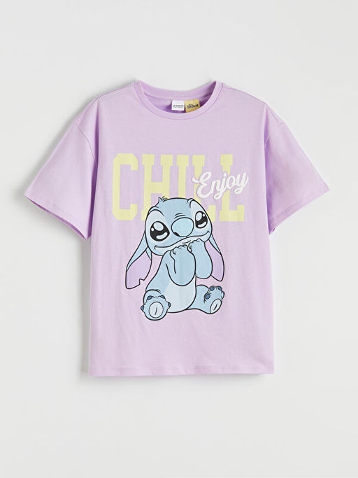 Stitch Bask?l? Bisiklet Yaka K?z ?ocuk Ti??rt