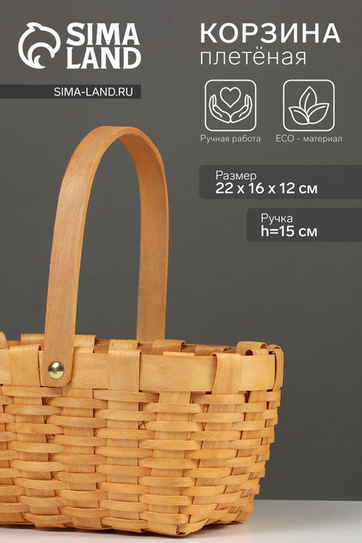 Плетёная корзина из ивы — это классический органайзер для домашнего хранения. Натуральный материал и традиционное плетение создают в интерьере атмосферу природного тепла.Удобные габариты 22×16×12 см: корзина подходит для хранения журналов, пряжи, косметики или кухонных принадлежностей. Форма удобна для размещения на полках и на подоконнике.Гибкое плетение из ивовых прутьев: натуральный материал образует прочный каркас с эластичной структурой. Конструкция сохраняет устойчивость при повседневном использовании.Натуральный бежевый оттенок: естественный цвет подчёркивает текстуру древесины. Корзина гармонично смотрится в интерьерах с элементами из натуральных материалов.Практичное применение в быту: изделие используют для систематизации вещей в гостиной, спальне или прихожей. Оно подходит как для повседневного хранения, так и в качестве готового подарка — можно наполнить сладостями, косметикой или небольшими сувенирами. Корзина из ивы — это сочетание натуральных материалов, функциональности и эстетики в домашней организации. Набор: Нет. Форма: Прямоугольная. Длина, см: 22. Ширина, см: 16. Высота без ручки, см: 12. Высота с ручкой, см: 27. Крышка: Нет. Дизайн: Однотонный. Бесплатная доставка: Да. Размеры товара: 16/12/22. Примечание: Ручная работа. Рисунок и размеры могут незначительно отличаться.. Примечание: Цвет может незначительно отличаться в зависимости от партии.. Примечание: На изделии могут присутствовать подтеки краски.. Примечание: Товар изготовлен из натурального материала, могут быть не значительные потёртости.. Примечание: Изготовлено из натуральных материалов. Ручная работа, размеры могут незначительно отличаться. Поверхность может иметь шероховатость, так же может быть торчащая лоза, которая никак не сказывается на функциональном состоянии..