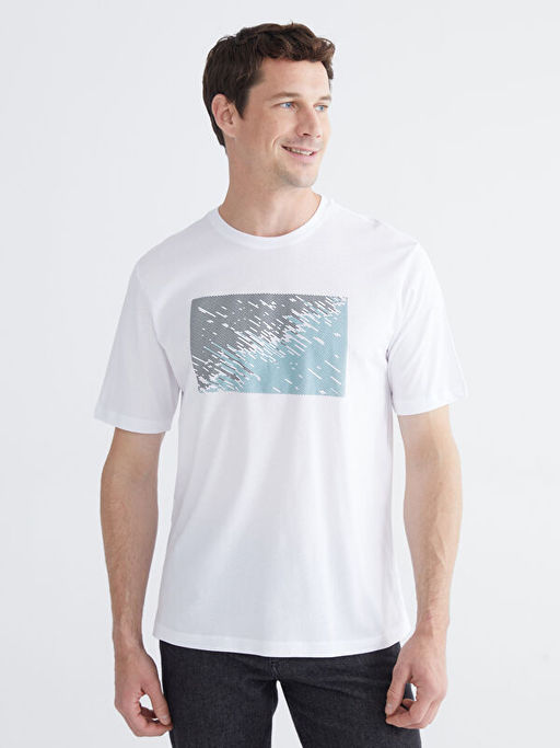 • Bisiklet Yaka Bask?l? Penye Erkek Ti??rt