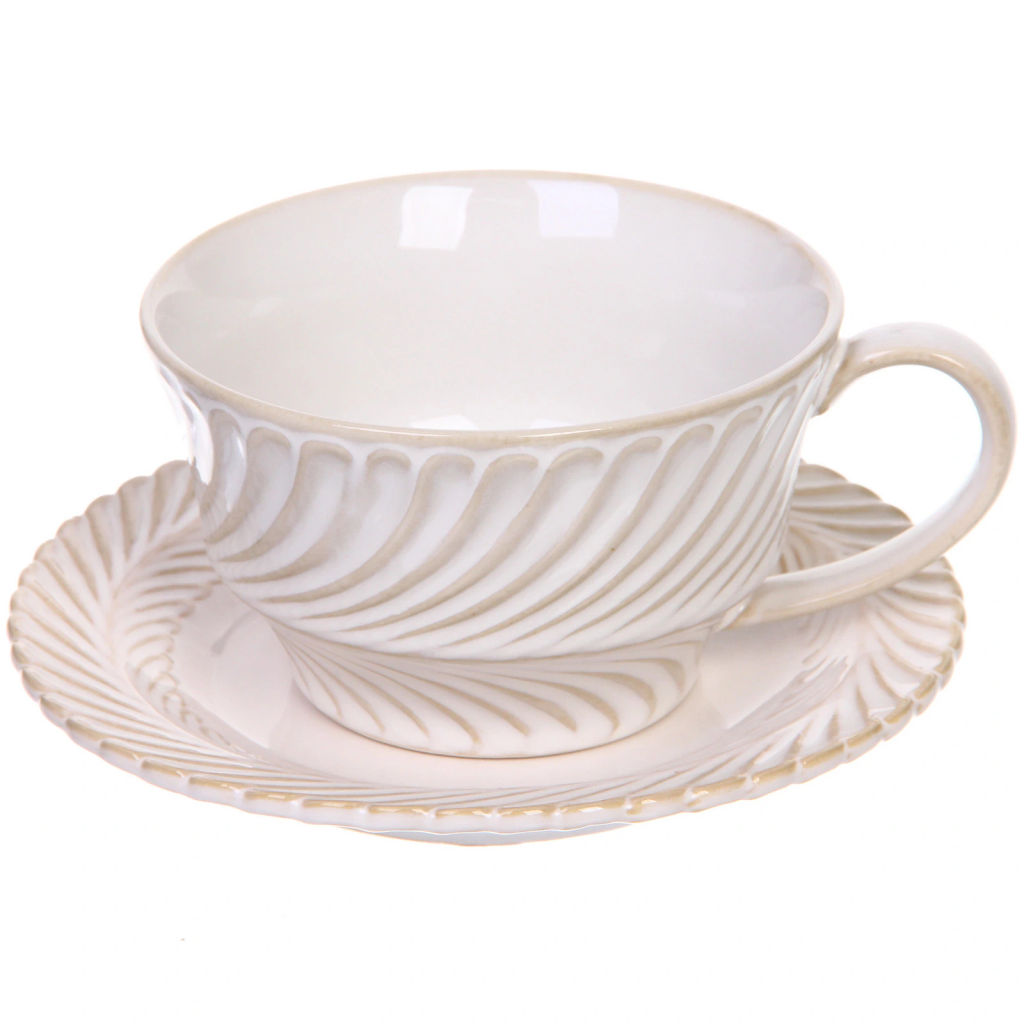 • Чайная пара "Верона" (кружка 230мл, блюдце) полоска бежевая