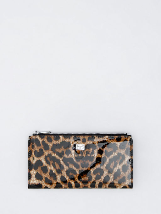 Кошелек женский из натуральной лаковой кожи. Модель раскладывается пополам, внутри два открытых отдела под купюры, шестнадцать карманов для визиток и пластиковых карт. Снаружи карман на молнии, на задней стенке карман на молнии под мелочь. Фурнитура блестящее серебро­