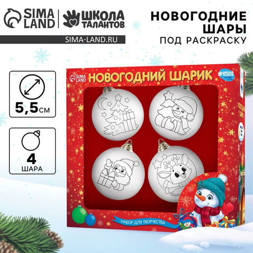 • Ёлочные шары под раскраску «Счастливый Новый год», 4 шт, d=5.5 см, набор для творчества