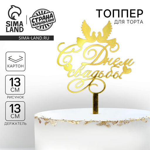 Подготовка к праздникам — это весьма непростое занятие, которое требует много времени. Подчеркнуть особую атмосферу торжества и без лишних хлопот украсить торт помогут наши топперы. Просто вставьте их в сладкое угощение — они добавят яркости вашему мероприятию и сделают его запоминающимся. Набор: Нет. Высота держателя, см: 13. Тематика праздника: Свадьба. Бесплатная доставка: Да. Наша разработка: Да. Размеры товара: 0.5/25.5/15.