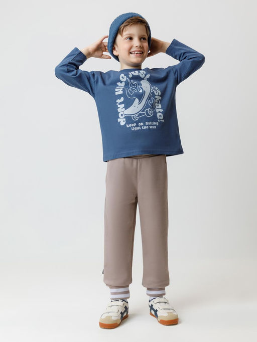 Объёмные брюки для мальчика из мягкого петельчатого трикотажа. В составе 80% натурального хлопка и 20% полиэстера, при этом полиэстер ввязан внутрь по особой технологии и не соприкасается с кожей. Эластичный пояс на резинке регулируется по ширине с помощью шнурка, по бокам два удобных кармана, внизу эластичные манжеты.. Состав: 80% хлопок, 20% полиэстер