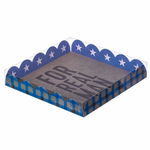 Цена за 5 шт. Коробка для печенья, кондитерская упаковка с пластиковой крышкой, For real man, 18?18?3 см