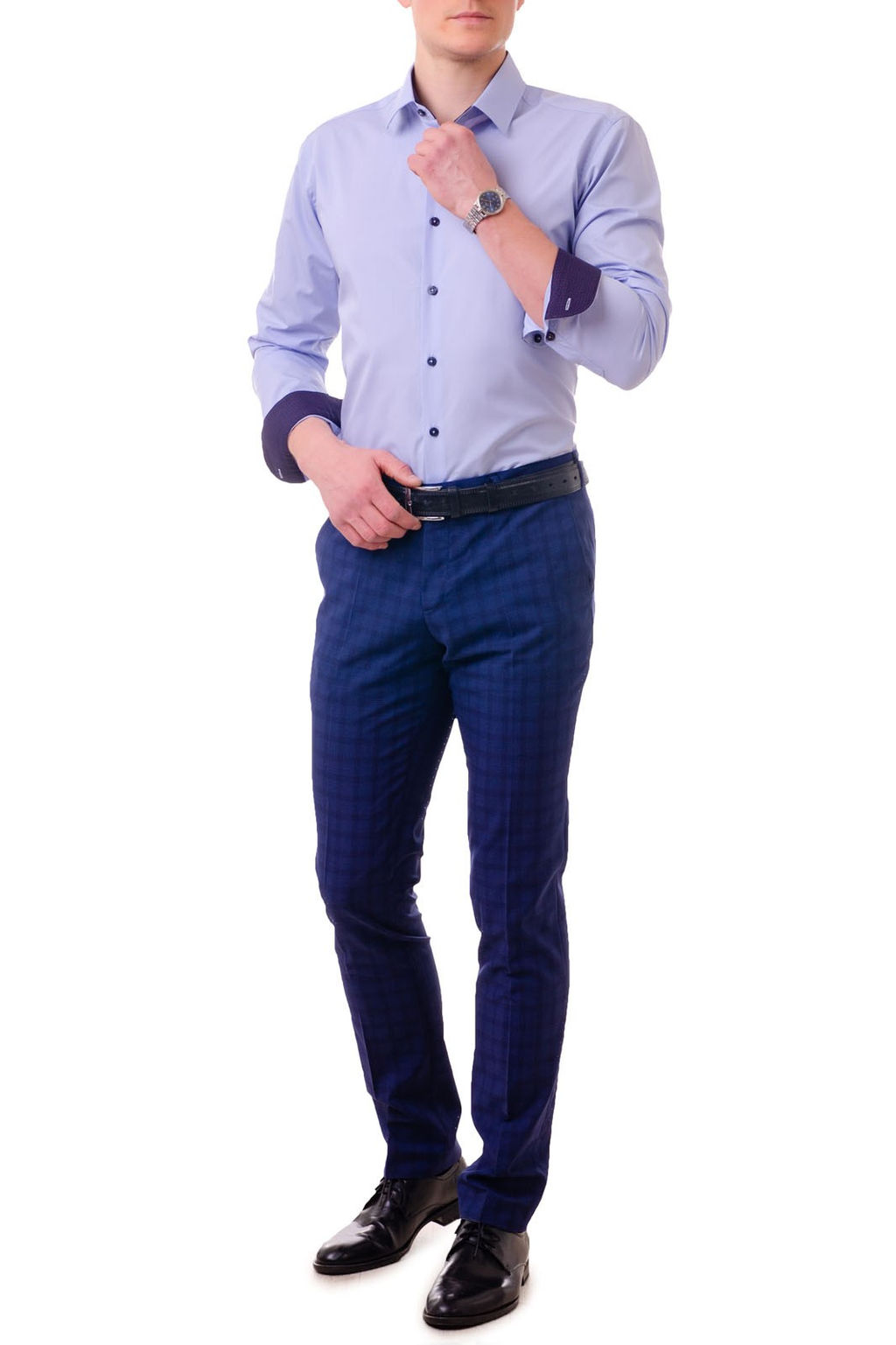 Рубашка классическая светло-голубого цвета. Внутренний воротник, стойка и внутренние манжеты выполнены из дополнительной ткани. Носить можно с джинсами и с брюками в контраст к тону основной ткани.