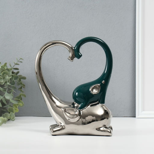 Фигурка керамика Слон со слонёнком. Сердце, т. зелёный с серебром, 7.3?17.5?22 см
