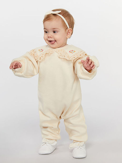 Bisiklet Yaka ?i?ekli K?z Bebek Tulum