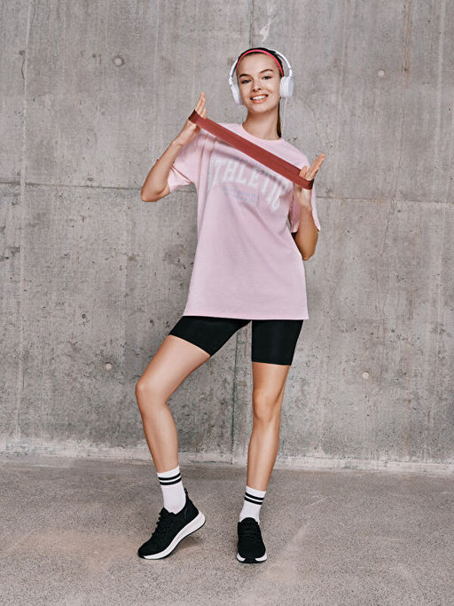 • Bisiklet Yaka Bask?l? Kad?n Spor Ti??rt