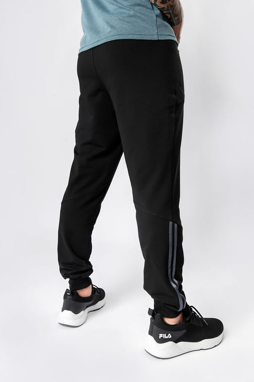 Контрастные лампасы по бокам ниже колена придают изделию динамичный спортивный акцент.