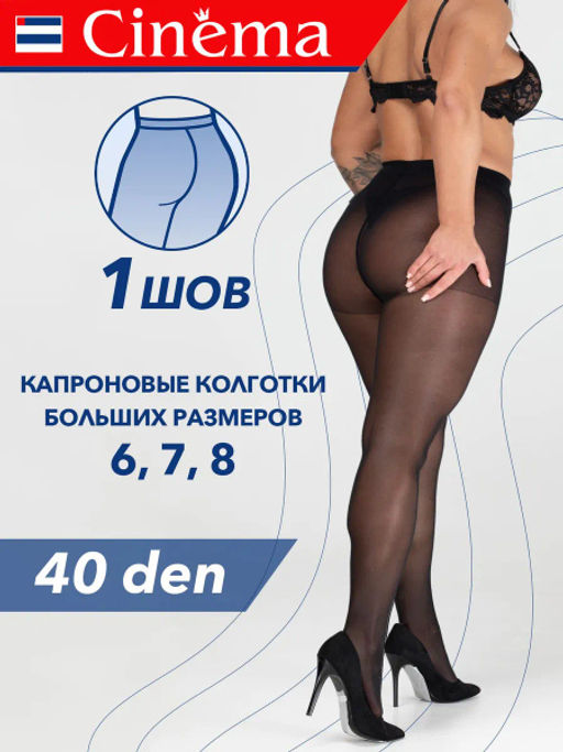 Эластичные, мягкие капроновые колготки большого размера плотностью 40 ден. Прозрачные, всезесонные колготки с шортиками, с мягким поясом, усиленным мыском и хлопковой ластовицей. Единый размер - Один шов сзади.
