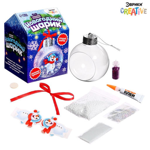 • Ёлочный шар своими руками «Снеговик», набор для опытов, диаметр 7 см