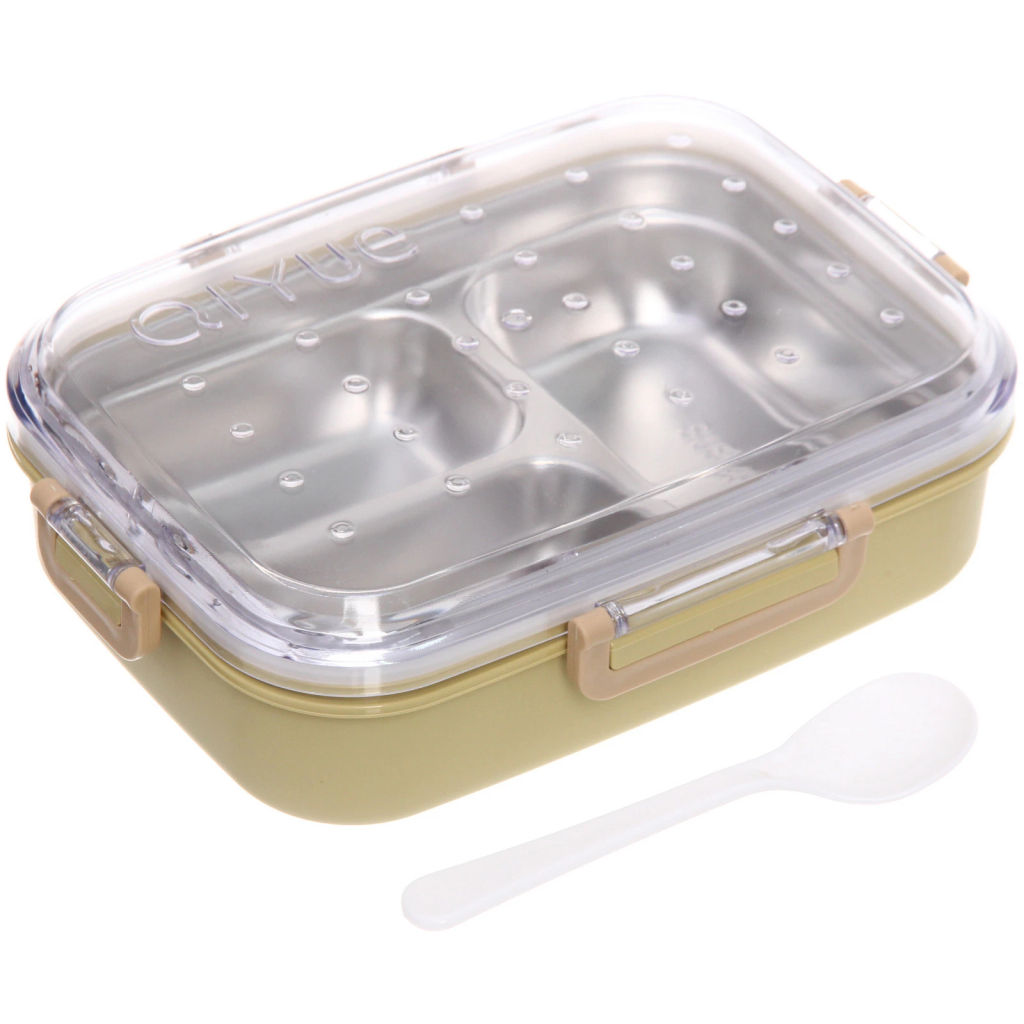 Внешний корпус ланч-бокса выполнен из прочного и легкого пластика, что обеспечивает надежную защиту содержимого от внешних воздействий. Внутри имеется металлический лоток, разделенный на 3 ячейки 100 мл, 100 мл и 250 мл. Металлическая поверхность не вступает в реакцию с пищей, сохраняя её вкус и аромат, а также легко моется и не впитывает запахи, гарантируя гигиеничность и долговечность использования. Общий объем лотка 700 мл­