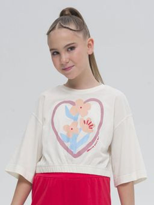 Маркированный товар Состав: 100%хлопок Молодежный укороченный джемпер для девочки с коротким рукавом. Кроп топ свободного прямого кроя и актуальный оверсайз силуэт делают детский джемпер невероятно модным и удобным. По низу изделия резинка. Яркая и стильная вещь с принтом, излучающим любовь, охладит в жаркую погоду пропуская воздух. Можно надевать под ветровку как весенний вариант, под тонкую жилетку как летний или в качестве самостоятельного элемента гардероба девочек для создания многослойного образа. Объемная короткая кофта подростковая самая уютная вещь на весну и на лето. Свитшот - базовая вещь в гардеробе стильного подростка. Благодаря уникальному крою, комфортно подойдет для любой фигуры девушки, для высоких и невысоких детей. Мягкая трикотажная блузка подойдет на улицу для прогулок, отдыха на природе, путешествий, посещение кружков и секций, на танцы и хип-хопа, занятия спортом, как домашняя одежда для дома и повседневный вариант. Станет самой любимым и востребованным в гардеробе ребенка.
