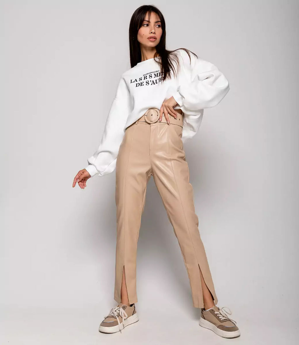 Брюки из эко-кожи с небольшими разрезами спереди подойдцт как в офис, так и для вечерних прогулок. Зауженная модель поможет подчеркнуть все достоинства фигуры их владелицы. br />Вы можете заказать онлайн презентацию на интересующие Вас модели. Наши менеджеры свяжутся с Вами и проведут индивидуальную видеотрансляцию, помогут составить заказ и ответят на Ваши вопросы.­