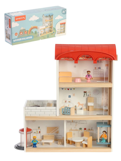 Деревянный кукольный домик с мебелью — это уютный мир для творческих игр, который станет любимым уголком для маленькой хозяйки. Этот компактный домик включает всё необходимое для создания собственного пространства: гостиную, спальню и кухню. Девочка сможет проявить фантазию, обставляя интерьер и создавая уникальные истории.ОсобенностиИзготовлен из дерева и покрыт безопасными нетоксичными красками.В комплекте — разнообразная мебель и аксессуары для каждой комнаты.Конструкция делает хранение и переноску удобной и компактной.Подходит для девочек от 3 лет.Развивает воображение, творческое мышление и мелкую моторику.Как играть?«Обустрой свой дом». Предложите ребёнку расставить мебель и аксессуары по комнатам, создавая уютное пространство. Это развивает навыки планирования и организованности.«Придумай историю». Попросите малышку придумать сюжеты для своих кукол: семейные ужины, праздники или встречи с друзьями. Это стимулирует воображение и речевые навыки.Чем полезен этот домик?Кукольный домик помогает развивать важные навыки: воображение, творческое мышление и социальные навыки. Работа с мебелью и аксессуарами тренирует мелкую моторику и координацию движений. Игра в домик способствует развитию эмоционального интеллекта, так как ребёнок учится взаимодействовать с окружающими через ролевые игры. Благодаря натуральному дереву и безопасным материалам, игрушка надёжна и долговечна.Идея для подаркаДеревянный кукольный домик станет отличным подарком для девочки, которая любит творческие игры и создание уюта. Он подходит как для домашнего использования, так и для занятий в детских садах. Подарите ребёнку возможность погрузиться в мир фантазий и весело провести время! Для кого: Для девочки. Возраст: От 3 лет. Вид упаковки: Коробка картонная. Складной: Да. Дополнительные функции: Без функций. Вид: Дом. Бесплатная доставка: Да. Размеры товара: 56/9/54.