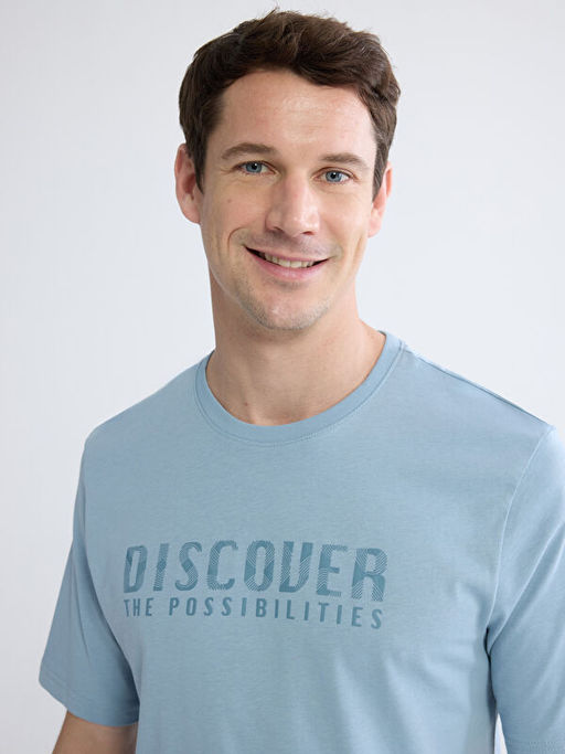 Bisiklet Yaka Bask?l? Penye Erkek Ti??rt