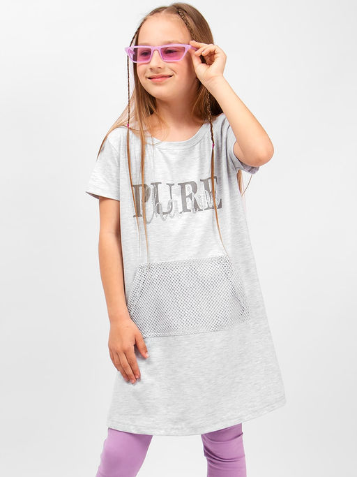 Туника для девочки Bonito свободного кроя с оригинальным принтом и карманом кенгуру. Руква и низ изделия на беечной резинке. Материал ткани хлопковое полотно кулирка с лайкрой. Хорошо пропускает воздух, приятный к телу, не раздражает кожу.